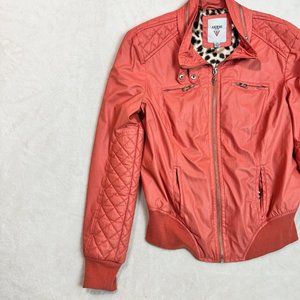Guess Women's S Faux Leather Bomber Biker Jacket Red Pink Quilted Outerwear