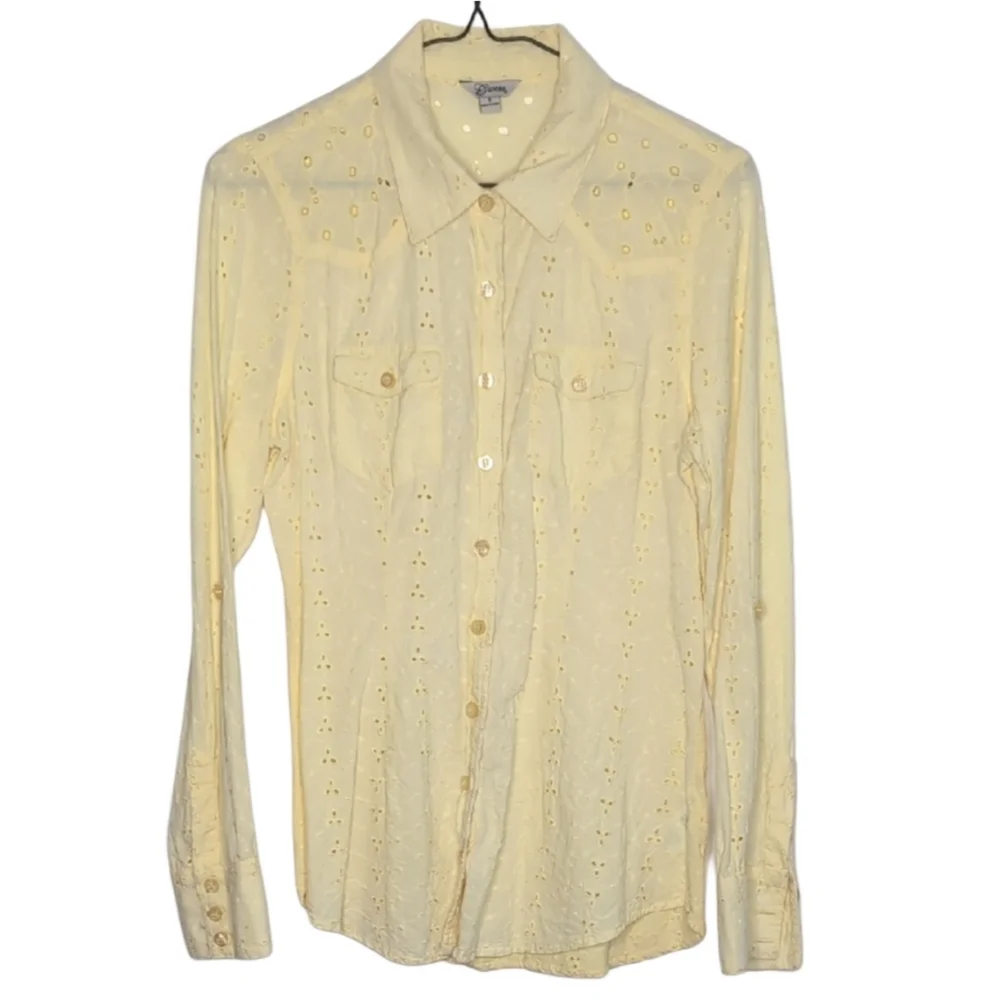 Guess Women's Small Yellow Long Sleeve Button Up Collar Lace Shirt