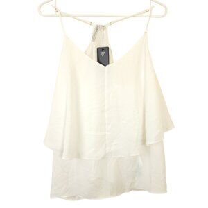 Guess Womens White L Ruffle Top Strap Sleeveless Pullover New with Tags Large