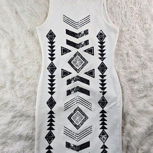 Guess Women's White and Black Beaded Sleevesless Midi Dress Size L