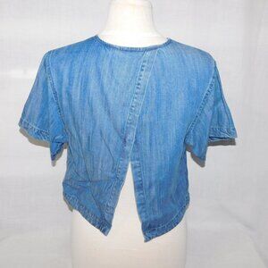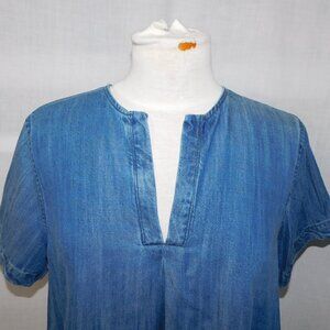 This gorgeous Womens XS Guess Blue Chambray V Neck Split Back Round Hem Shout Sleeve Top is in great clean condition. Shirt is 100% Tencel - Machine washable.