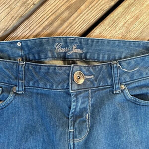 Small amount of wear on the legs at the very bottom as seen in the photos. These jeans are low - mid rise