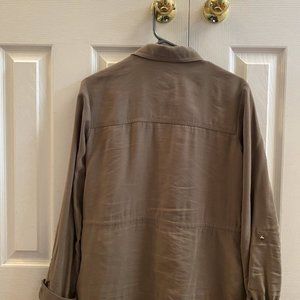 Very soft material with a drawstring to cinch at the waist for a sleeker/fitted look.