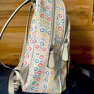 Multicolor guess backpack. It’s a medium size bag not too large not too small to carry everyday to school or work.