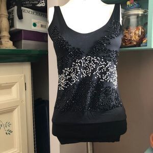 Black Guess tank with bead work on the front