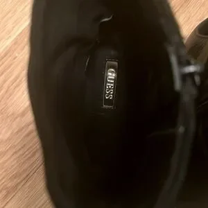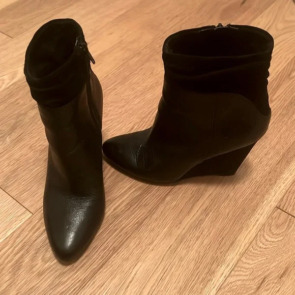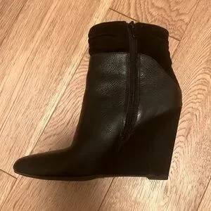Man made leather & suede Great condition, only worn a few times. 4” wedge heel, very comfortable