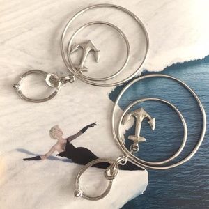 Guess by Marciano 2000s Nautical Rhinestone Anchor Dangly Hoop Earrings