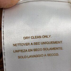 Very good, pre-owned condition with no rips, holes; light stain on the interior lining, and a few small thread pulls on front and back of skirt.