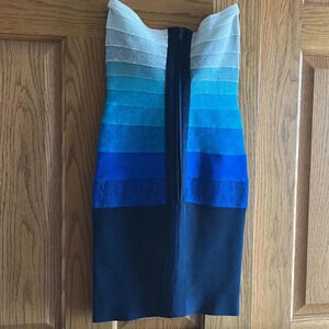 Elegant strapless dress with a stunning blue ombre design. Perfect for any occasion.