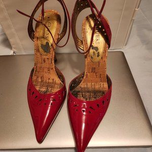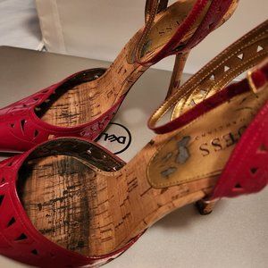 Red patent and cork heel