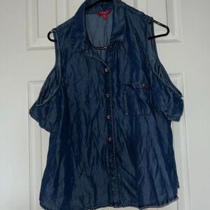 Guess cut out cold shoulder sleeves denim top Sz XL