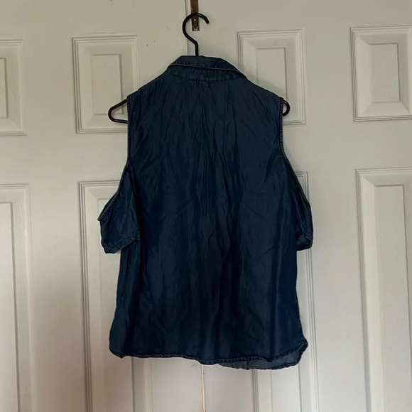 Guess cut out cold shoulder sleeves denim top Sz XL