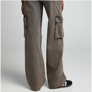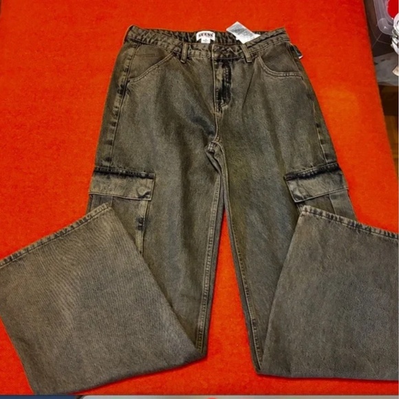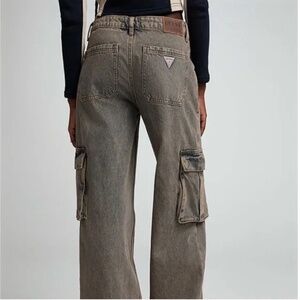 Guess dark wash faded wide leg cargo baggy jean NWT