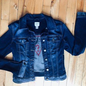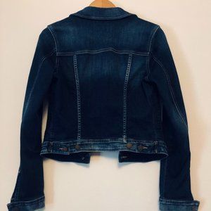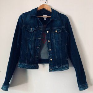 Classic denim jacket, featuring a classic point collar, four functional pockets and a faded dark blue wash.