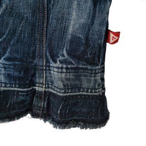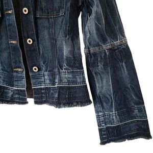 Guess denim jacket undone raw hem flared sleeve dark wash sz S