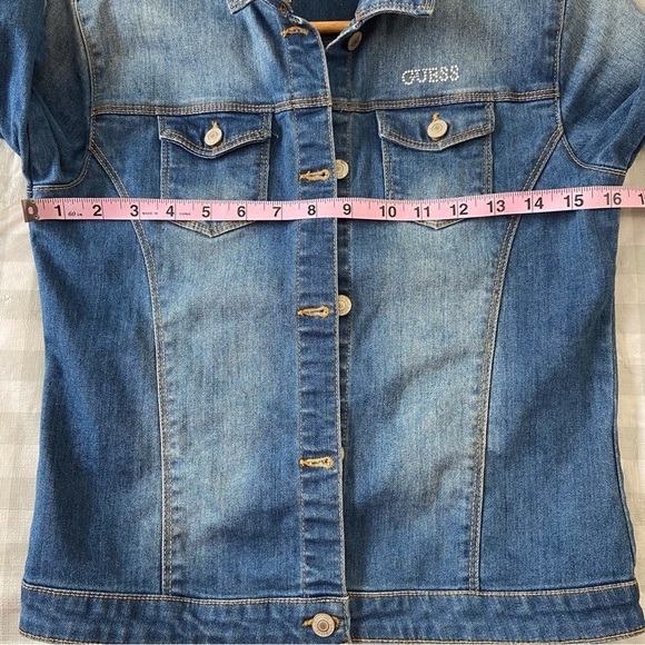 Guess denim jean jacket crystal embellishments soft denim blue size 14