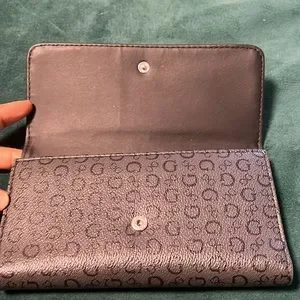 Great condition, hardly used guess wallet in grey and black with silver hardware
