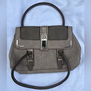 Guess, grey strapped Elegant Gray Handbag with silver hardware, floral inside