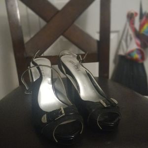 Pair of real guess heels...black....size 7 ..barely worn because they dont fit...open toed and heel strap. You can email me at 2ndtlc1998@gmail.com