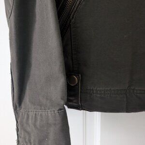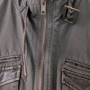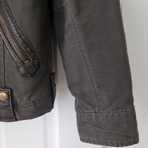 Guess army green coat with leather accents. Youth 16/18. Looks badass with buckle collar!