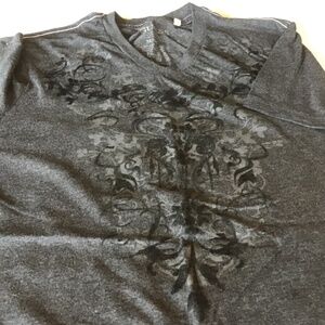 Guess men T-shirt gray & black print with V neck size M, short sleeve