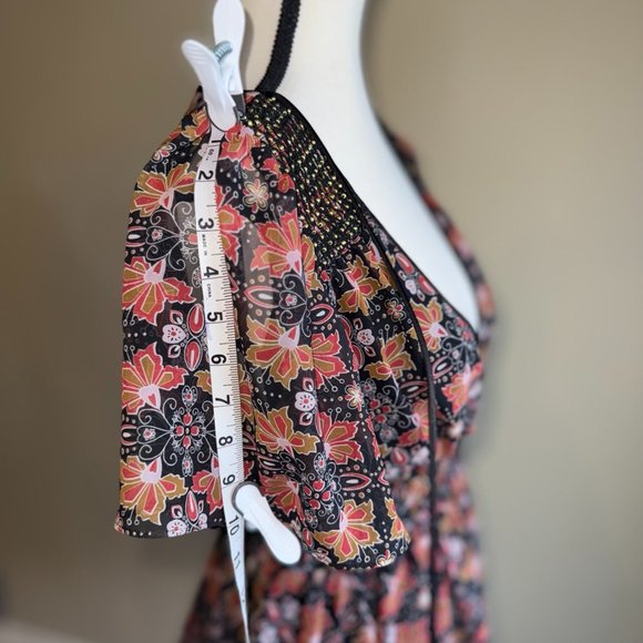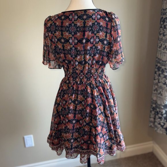 Guess mini black, orange & brown, short flutter sleeve, garden dress. Size M.