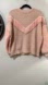Soft blush sweater with chevron faux fur design. Cozy and chic for casual wear.