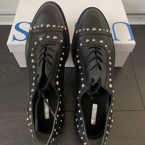 New pair of lace up flats with silver and gold studs