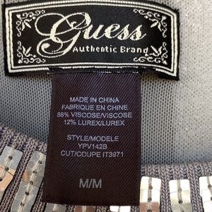 Guess short sleeve sweater with silver details. Size M, 88% Viscose 12% lurex