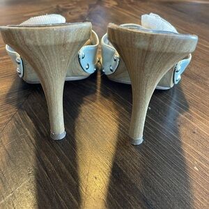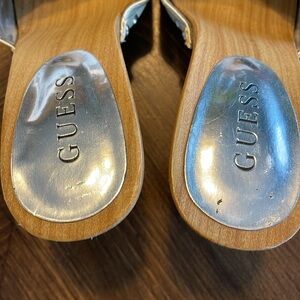 Guess size 7 Open Toe High Heels. Wood and champagne coloured. Excellent used condition. Worn for two weddings.