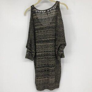 Guess tan black open knit Dani Pointelle sweater 3/4 sleeve small