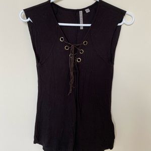 Black ribbed shirt with raw hems. 97% rayon, 3% spandex. Worn twice.