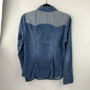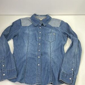 Guess two-tone Denim Chambray Pearl Snap Blouse