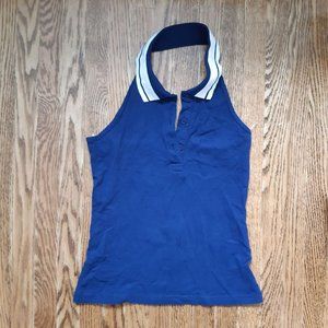 Size S from Guess Jeans Navy sleeveless halter top, white/pink polo collar