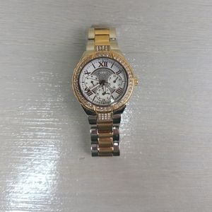 Ladies Guess watch. Colour:Silver and gold. Condition: 7/10. Visible signs of wear on exterior.