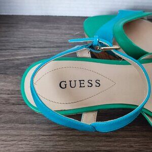 Guess wedge heel sandals blue & green cork sole women's size 8 ?