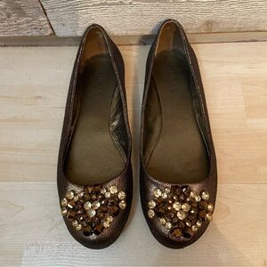 Guess women’s brown metallic embellished rhinestones ballet flats size 6.5