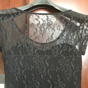 Beautiful lace dress. The lining in the back start just below the shoulder blades. Tags say size medium, but I have listed it as xs. The across the chest it is 15.5” from armpit to armpit. The material has a small bit of stretch. Dress is 33” long. Would be fantastic for Christmas parties or just an evening out.