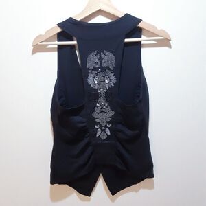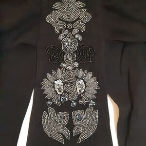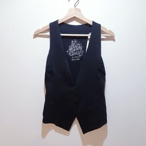 Lovely black jersey cotton vest from Guess with a beaded design running down the back. 2 small front pockets and 3 button closure. All beads and sequins etc are perfectly in tact. Great lightly used condition. Size XS.