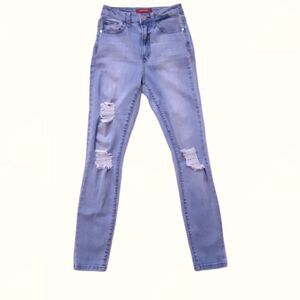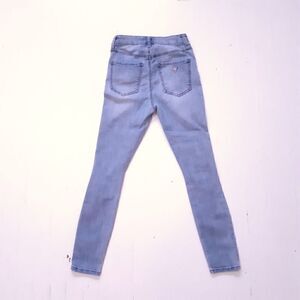 Light blue wash Guess skinny jeans with distressed details. Has stretch. Like New condition. High rise fitted.