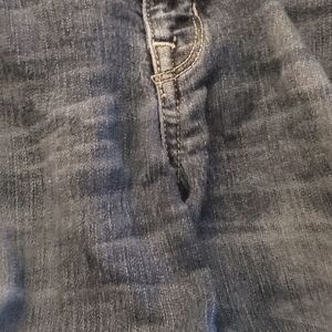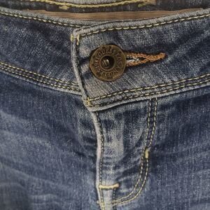 Lightly Distressed, holes with patches, Good Condition, Size 27, Waist-15, Length-38, Inseam-30, Cuff-5.