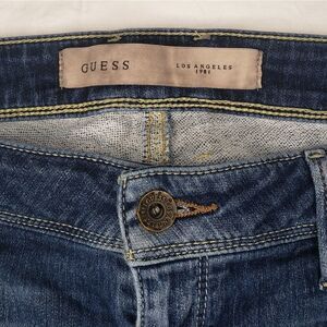 Faded Dark Blue Mid Rise Slim Fit Skinny Jeans, by GUESS Los Angeles 1981.