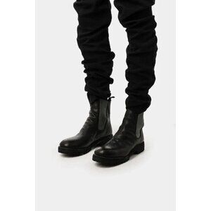 Black full grain soft horse leather Chelsea boots with grey stretch fabric inset for instep from Guidi.