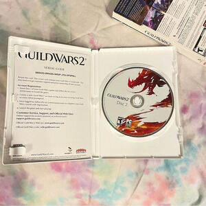 Guild of war 2 pc game 2 disc pack works great and no scratches on disc has a sleeve cardboard cover with bonus pics in front opening flap