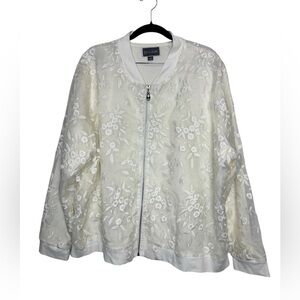 Keywords: Guillaume lace jacket, ivory bomber jacket, lace zip-up jacket