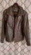 Description: Supple chocolate-brown genuine leather jacket with eye-catching basket-weave trim framing the zipper and collar. Fully lined satin polyester, two open hand pockets plus interior pocket. Excellent condition — no rips, stains
