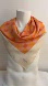 This elegant Guillemin Paris silk scarf features a striking geometric plaid design in warm tones of tangerine, peach, and golden yellow with a soft cream border. The hand-rolled edges and lustrous silk give it a timeless, sophisticated finish. This piece captures the effortless style of mid-century French fashion — perfect for collectors or anyone who loves vintage Parisian accessories.