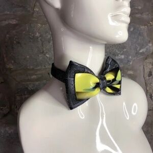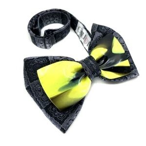 Silk by Sean John The “Select Series” is Guillotine’s couture collection - the ultimate in luxury and creativity. Years of expertise go into each lightweight polymer and luxury silk one-of-a-kind bow tie. The world's only truly sculpted bow tie. The silk is from repurposed vintage designer silk ties and scarves from the 1950s-2000s, thereby saving this incredible fabric from ending up in landfills. Each tie is sculpted one at a time, without the use of a mould. All the colours are created individually in polymers prior to being sculpted and fired, and are combined one at a time through classic sculpting techniques to achieve the final piece. There is no painting involved in a Guillotine tie. Each piece is signed and named and then attached to the hand-sewn silk neck strap. Guillotine bows are truly couture, wearable fine art. Bow Size: 5 inches. Strap Dimensions (adjustable standard): 10 - 20 inches.