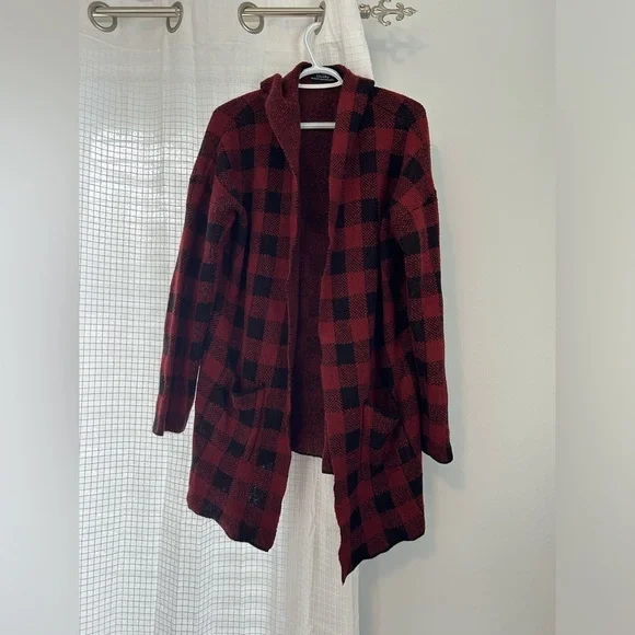 Guilty Cardigan Sized: XL Knitted material Red/Black plaid Side pockets T/H