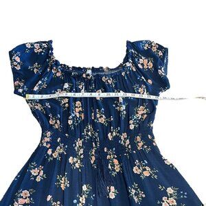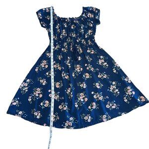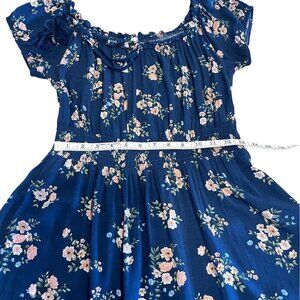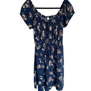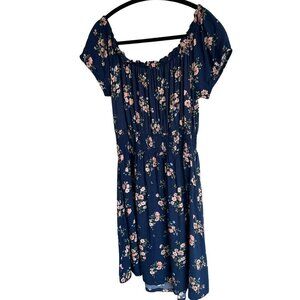 Guilty Fit Flare Off Shoulder 100% Rayon Smocked Blue Floral Dress Women's Large